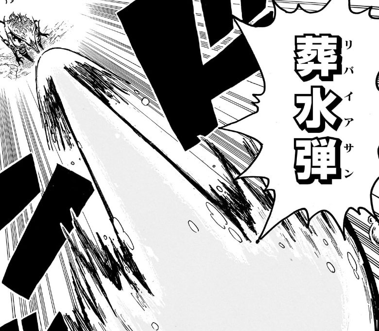 膨大な量の水を圧縮して放つ強力な一撃。サメや龍のような形状で敵を飲み込む